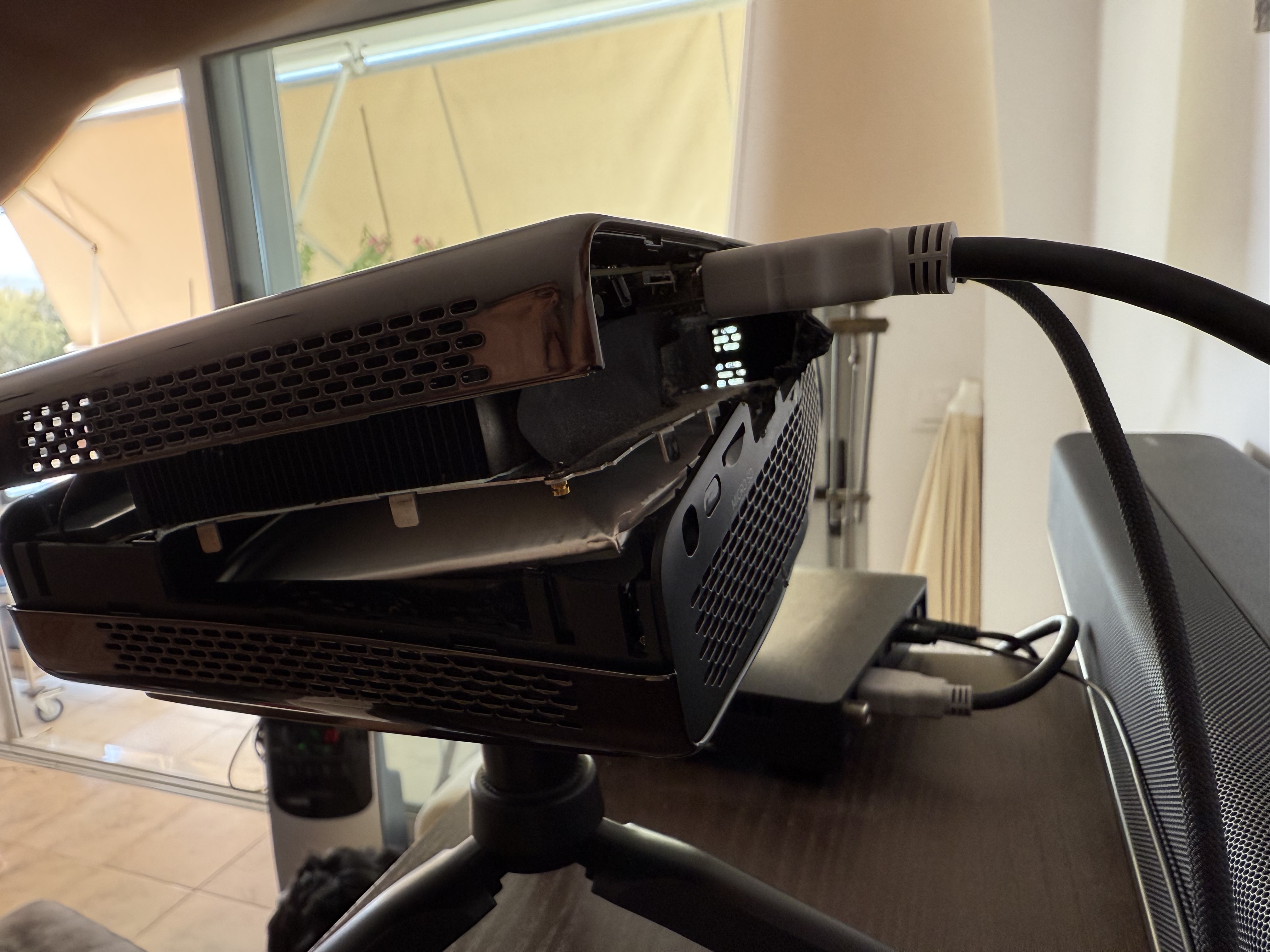 It is possible to run the projector without battery. When you disconnect and dismount it. This state is usually not happening overnight … I detected it sooner, so I was able to save the chassis.