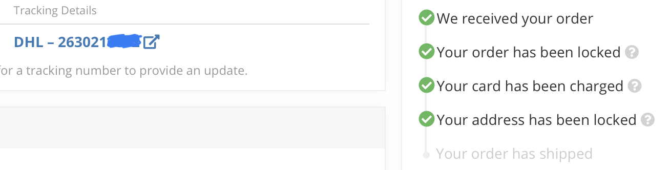 It now happened exactly what I feared would happen: For the perk with the much higher Indiegogo contribution id (2 month later) I’ve got the tracking number while for my first contribution I haven’t. That’s why I have been continuously asking the respective questions. Unfortunately I still haven’t got an answer so I still do not know whether this is a mistake in the logistics or it is because both perks will be delivered at once.