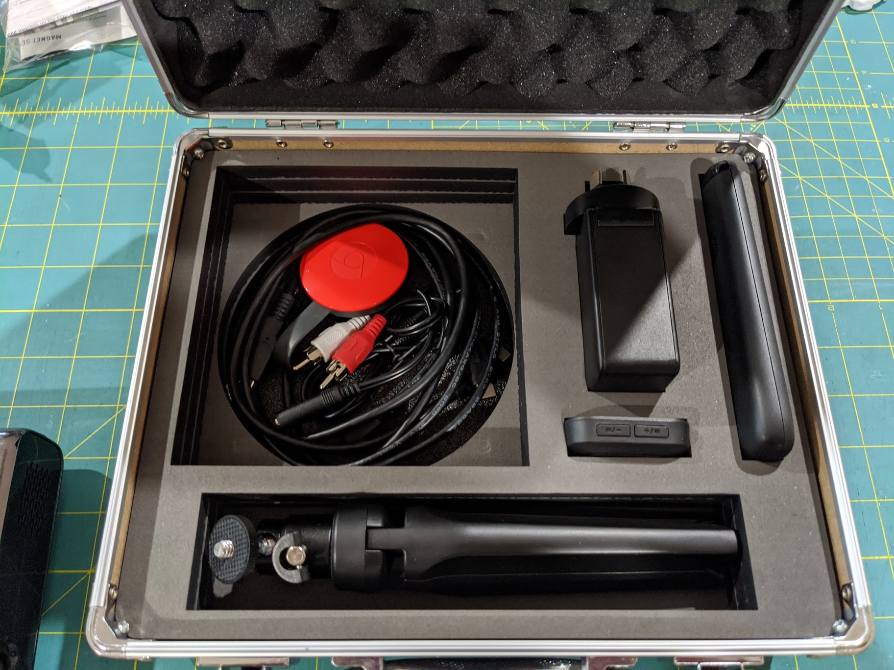 I have access to a laser cutter so I ordered a small flight case that would be big enough for the projector and then designed 5 inserts to cut (out of 10mm foam) to give me a slightly better way of storing the projector than the mesh bag.